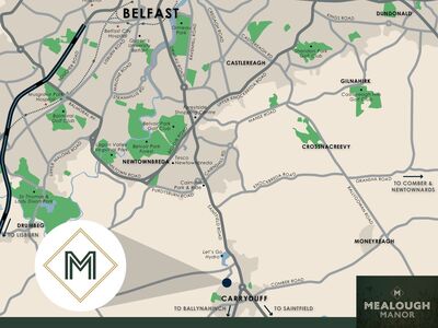 Carryduff combines the charm of a semi-rural community with excellent links into Belfast and beyond. The area is well served by schools, with Carryduff Primary School, St. Joseph’s Primary School and Cairnshill Integrated Primary School only minutes from Mealough Manor. Local shops and everyday conveniences are close at hand, while the city’s cultural and retail attractions are just a short drive away. With easy access to the Saintfield Road and nearby arterial routes, commuting couldn’t be simpler.