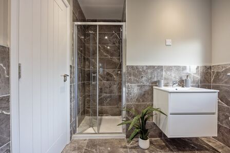 Dual drench shower fittings to include overhead rain fitting and hand shower in ensuite