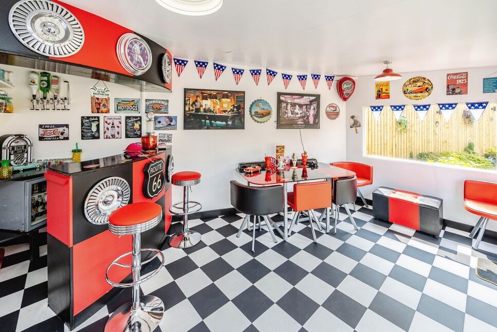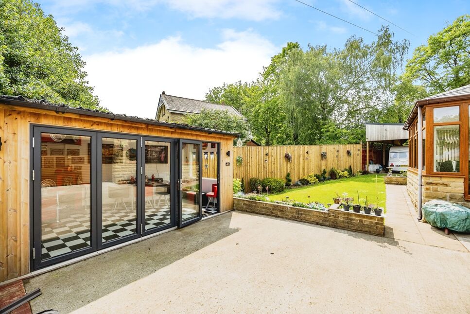 An amazing summer house in the rear garden, fitted with electric, a bar and bifold doors. This garden room is usable all year round and great for the summer months.