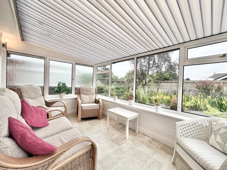 A bright and fresh UPVC double glazed conservatory offering additional sitting room space overlooking the private rear garden.