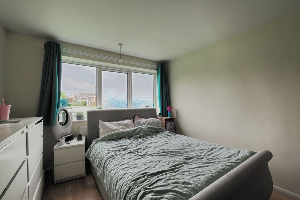 This generous double bedroom benefits from a suite of fitted wardrobes, maximising the floor space on offer. With laminate flooring, radiator and double glazed window to the front elevation.