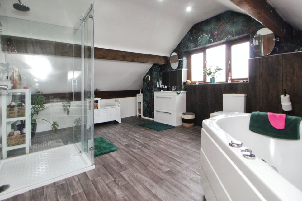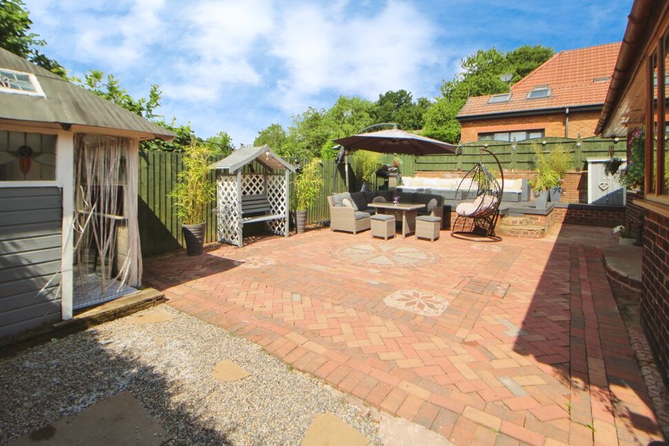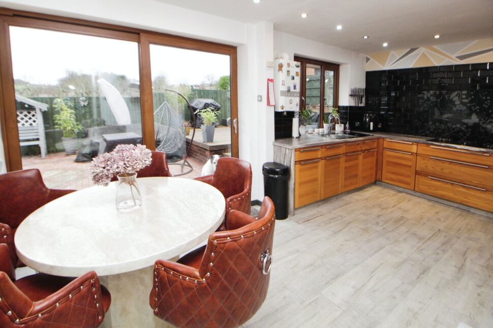 The bathroom is spacious and comes fitted with a Jacuzzi bath and separate shower, providing a touch of luxury. The lounge is a cosy haven, featuring a warming fireplace and a bay window which floods the room with natural light plus additional side aspect. The dining kitchen is a significant asset to this home, boasting a dining space and patio doors that lead out to the garden, perfect for al fresco dining and entertaining in the warmer months.