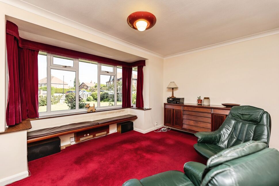 Fireplace surround housing a gas fire. Coving to ceiling and double glazed walk-in bay window overlooking the front elevation.