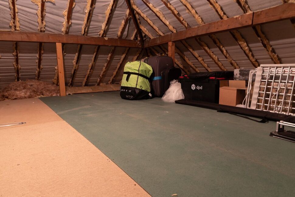 Having pull down ladder, fully boarded with ample storage space and lighting.