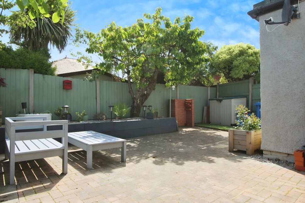 Being a low maintenance brick paved garden having raises stocked borders with plum, pear cherry trees, outside tap, small astro turf area, bound by fencing, being south facing and enjoys a private and sunny setting.