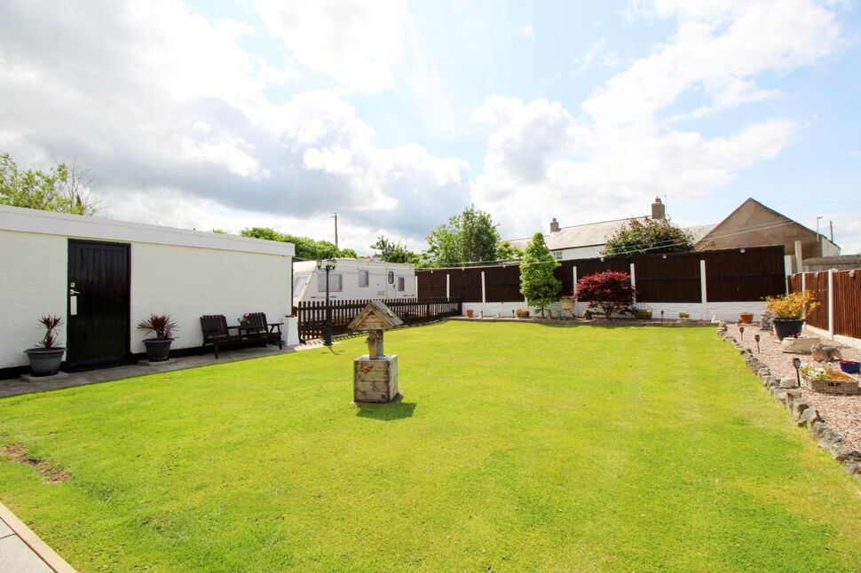 The property is approached by double wrought iron gates leading onto a hard-standing drive providing off street parking which in turn lead to the double timber gate. The remaining front garden is decorative stone with a single gate and pathway to the front door.The side garden continues off the drive being hard-standing providing ideal parking space for a caravan or motor home. Located here is a timber store and the bespoke timber bar ideal for those hot, summer nights. The rear garden is a true gem, large in size having a spacious paved patio with covered canopy, perfect for dining in the summer months, lawned garden with decorative borders all of which enjoys a sunny aspect.Included in the sale which is located behind the garage is a caravan in good condition. The current owners use this for guests.