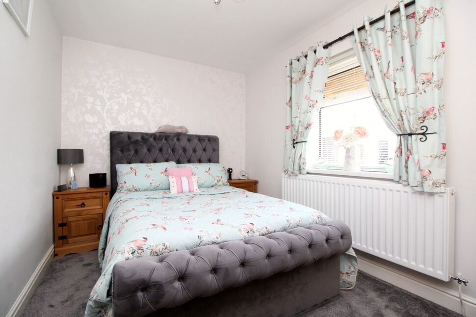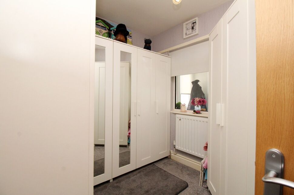 Having power points, radiator, thermostat control switch, large loft hatch access to a boarded loft and doors off.
