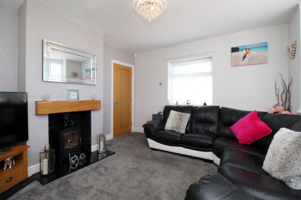 A large room having radiator, power points, feature cast iron wood burner sitting on a marble hearth, T.V. aerial point and uPVC double glazed window to the side and bay window to the front.