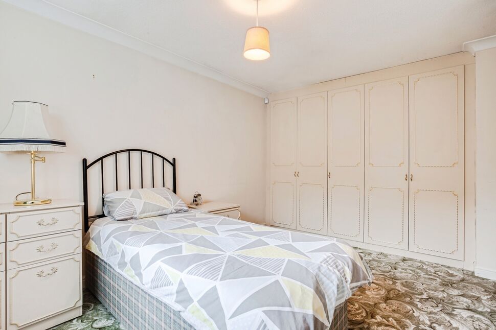 Double bedroom with fitted wardrobes, carpeted floor, gas central heating radiator and uPVC double glazed window to the rear elevation.