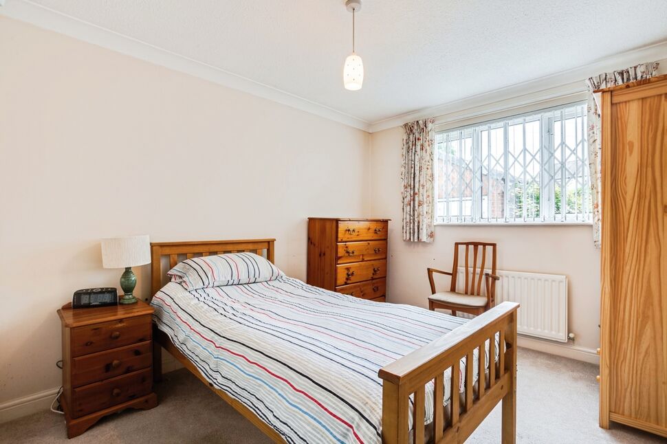 Double bedroom with carpeted floor, gas central heating radiator and uPVC double glazed window to the rear elevation.