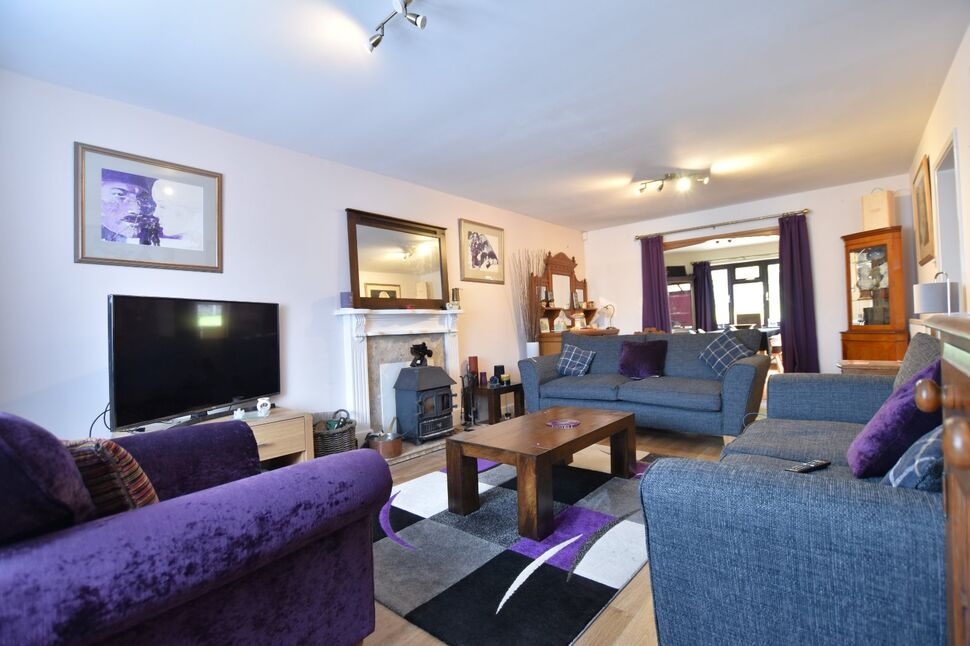 This spacious family home comprises internally of; central entrance hall, leading to the expansive sitting room with feature wood burning stove, and opening leading to the dining room and conservatory beyond, both overlooking the private rear garden.
