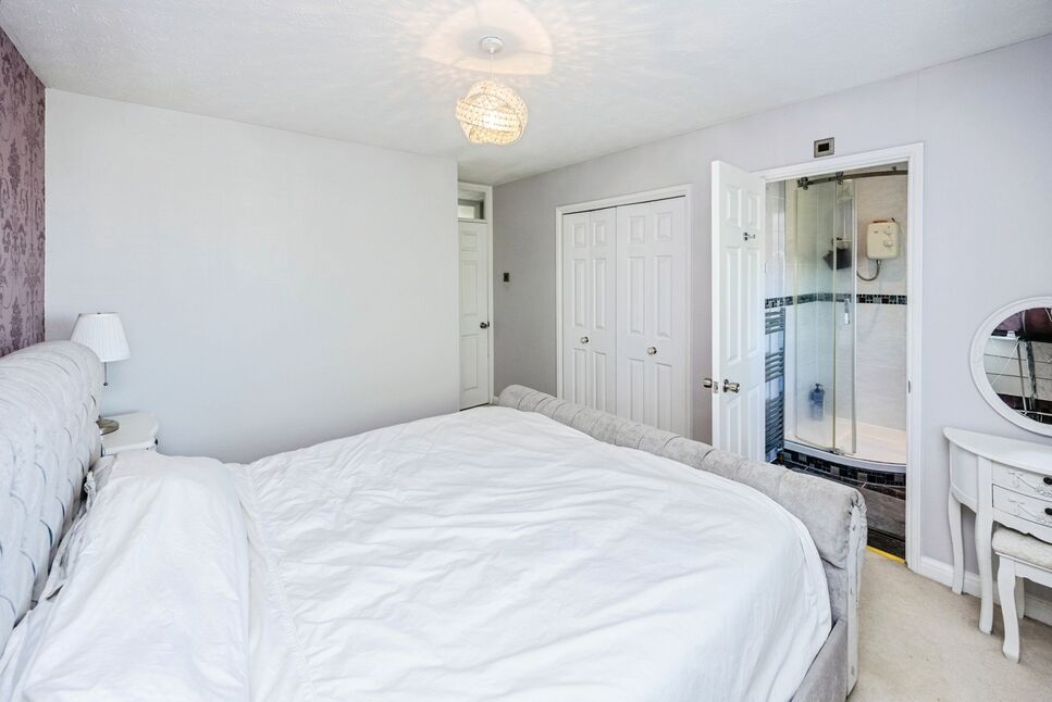 Spacious primary Bedroom which has built in wardrobes along one wall along with a ensuite shower room. The bedroom has a large DG's window over looking the front aspect along with CH radiator.