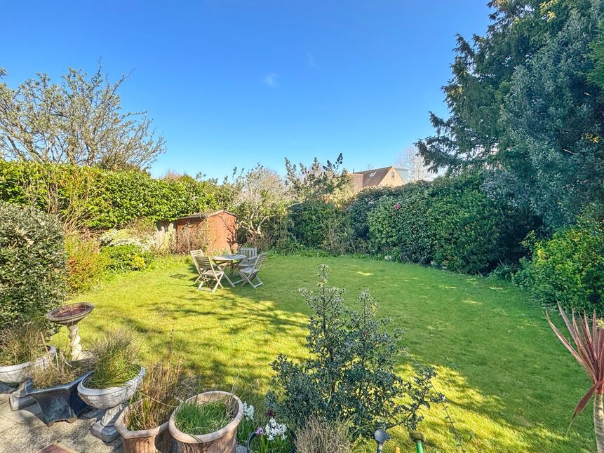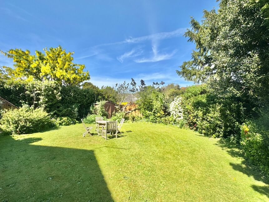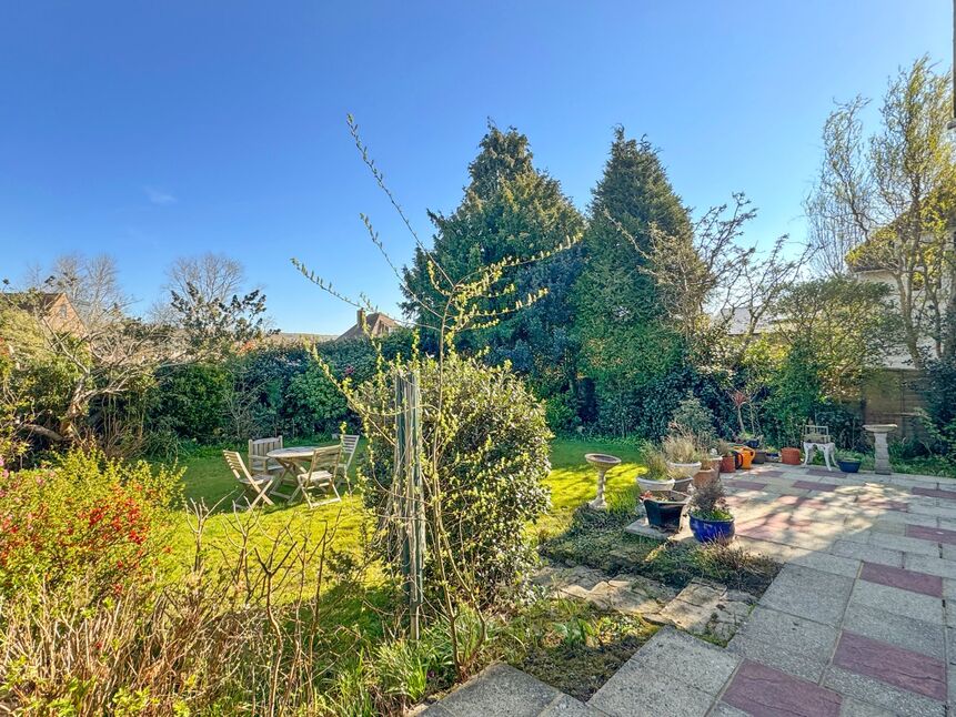 Pleasant private gardens to front and rear which are mostly laid to lawn with mature borders. Side access.
