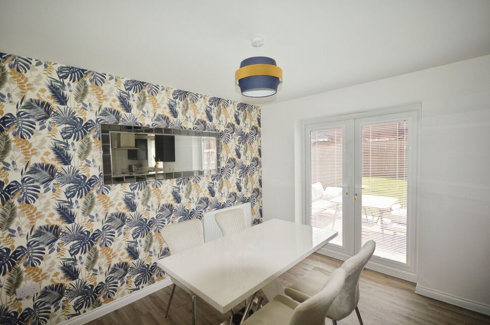 A masterclass in design this beautifully appointed four-bedroom detached family residence is ideally situated on an private drive shared with only a select number of distinguished homes. This immaculately presented property offers a rare blend of refined elegance, contemporary design, and practical family living, making it an outstanding opportunity for discerning buyers seeking space for growing families,. design excellence, comfort and prestige.Upon entering the property, you are greeted by a welcoming entrance hallway which sets the tone for the generous proportions and stylish interiors that follow. The spacious and elegantly decorated lounge provides a warm and inviting atmosphere, perfect for relaxing or entertaining guests.At the heart of the home lies a stunning open-plan kitchen and dining area, thoughtfully designed with modern family life in mind and including integrated appliances. This space benefits from a seamless connection to the rear garden via elegant patio doors, allowing natural light to flood the room while providing the perfect setting for indoor-outdoor living. A separate utility room adds convenience and functionality, and a ground-floor cloakroom/WC is ideally positioned for guest use.Ascending to the first floor, you will find four generously sized bedrooms, each offering ample space and versatility to accommodate a growing family or visiting guests. The principal bedroom boasts a stylish en-suite shower room, creating a serene private retreat, while the remaining bedrooms are served by a contemporary family bathroom finished to a high standard.Externally, the property continues to impress. To the front, there is an integral garage and a dedicated electric vehicle charging point, catering to modern environmental considerations. To the rear, a substantial and beautifully enclosed garden awaits, complete with thoughtfully designed patio areas ideal for al fresco dining, summer gatherings, or simply enjoying a moment of peace and privacy.Properties of this calibre, in such an exclusive and sought-after location, are seldom available. This exquisite family home offers the perfect balance of luxury, space, and practicality, and must be viewed to be fully appreciated.
