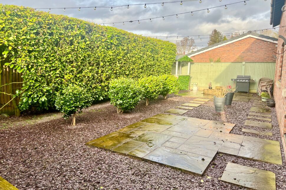 The property is set within superb landscaped gardens, which offer a low maintenance and secluded setting with attractive York stone and slate patio areas, with fence and hedge borders.