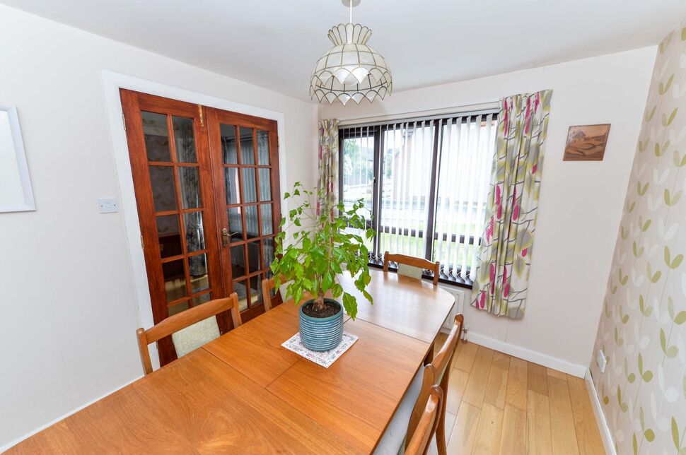 Accessed via double doors. Ample dining area. Solid wooden flooring.