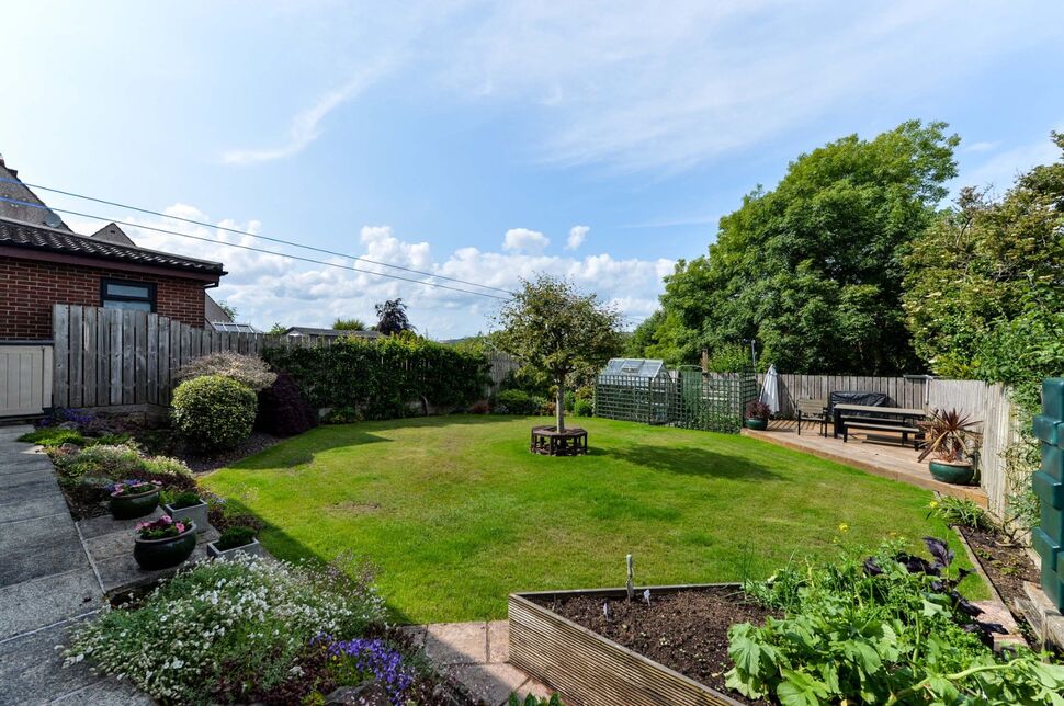 Well tended garden area to front in lawn and shrubbery. Ample driveway car parking for two cars. Side access. Enclosed, private level garden to rear bordered by fencing in lawn, flower beds, shrubbery and feature deck area. Green house. uPVC oil tank. Outside tap / light. Outside power points.