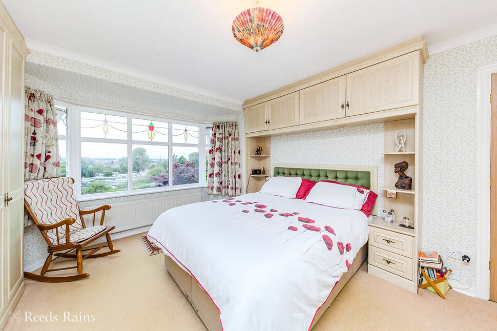 UPVC double glazed bay window to the rear aspect enjoying an elevated view over the canal and beyond. Excellent range of bedroom furniture providing wardrobes, bedside cabinets, overbed storage, dresser and chest of drawers. Radiator.