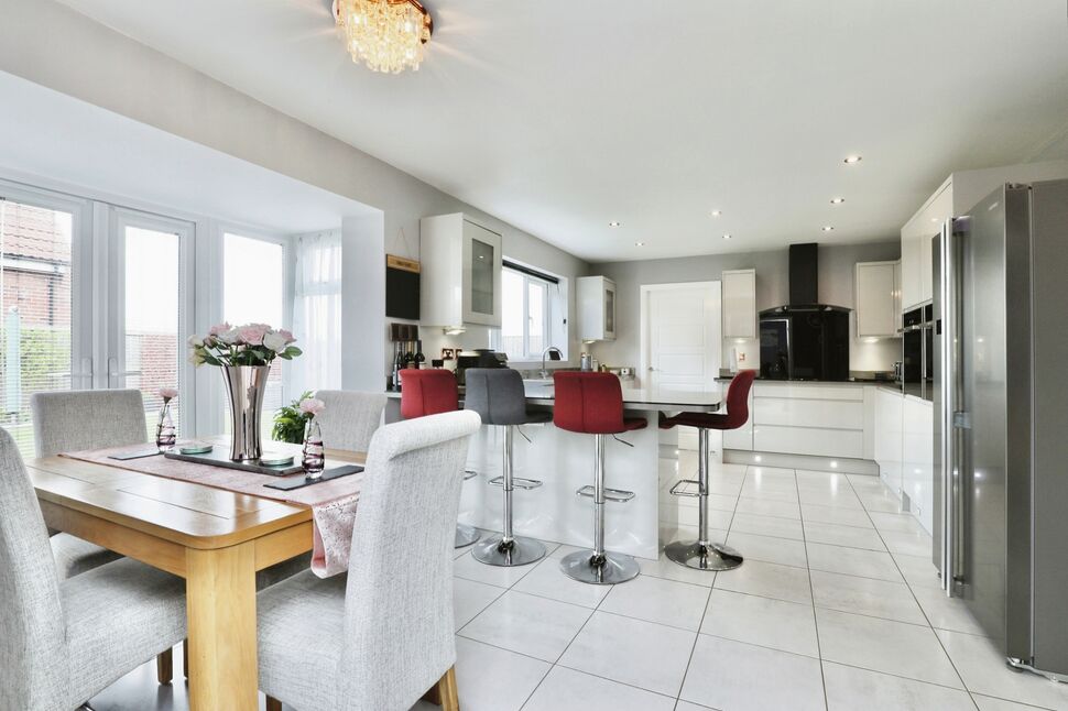 In brief the property comprises; welcoming and bright entrance hall, living room with bay fronted window, separate dining room/snug, stunning kitchen dining room with integrated appliances, utility room, useful downstairs w/c and integral double garage with electric sockets and lights inside.