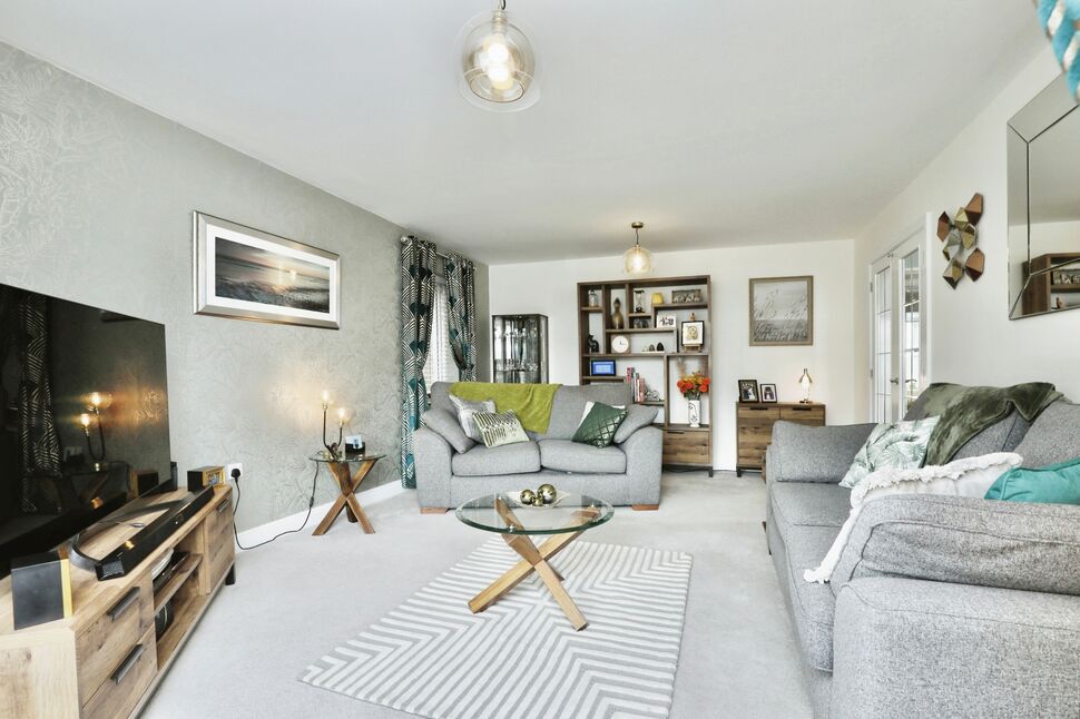 Beautiful living room with fitted carpet, two central heating radiators, internet fibre point, side facing double glazed window and front facing double glazed bay window creating heaps of natural light. Both windows benefitting from made to measure blinds.
