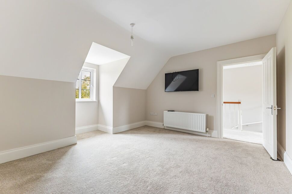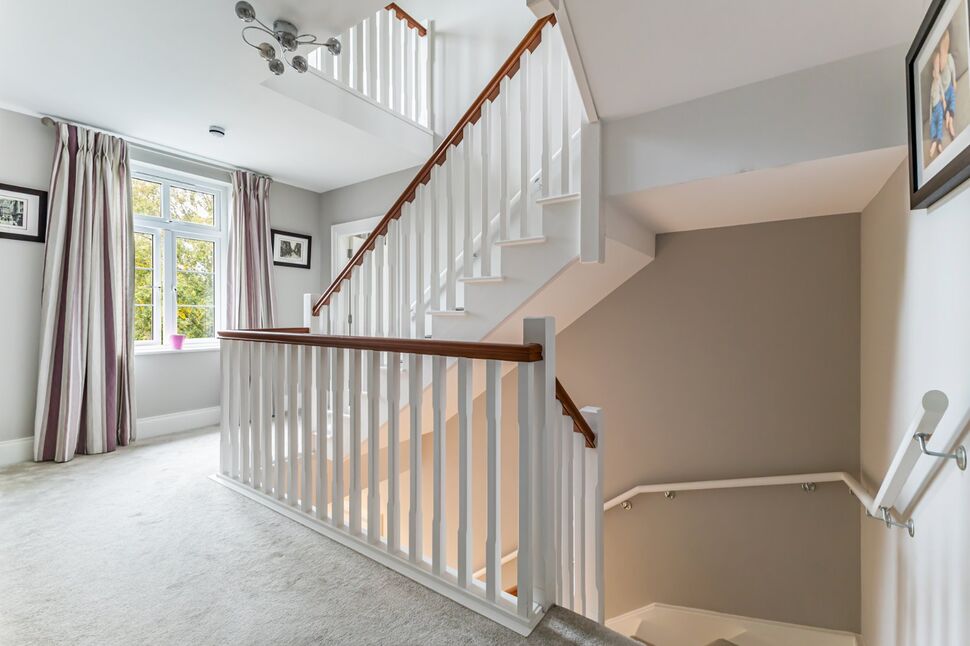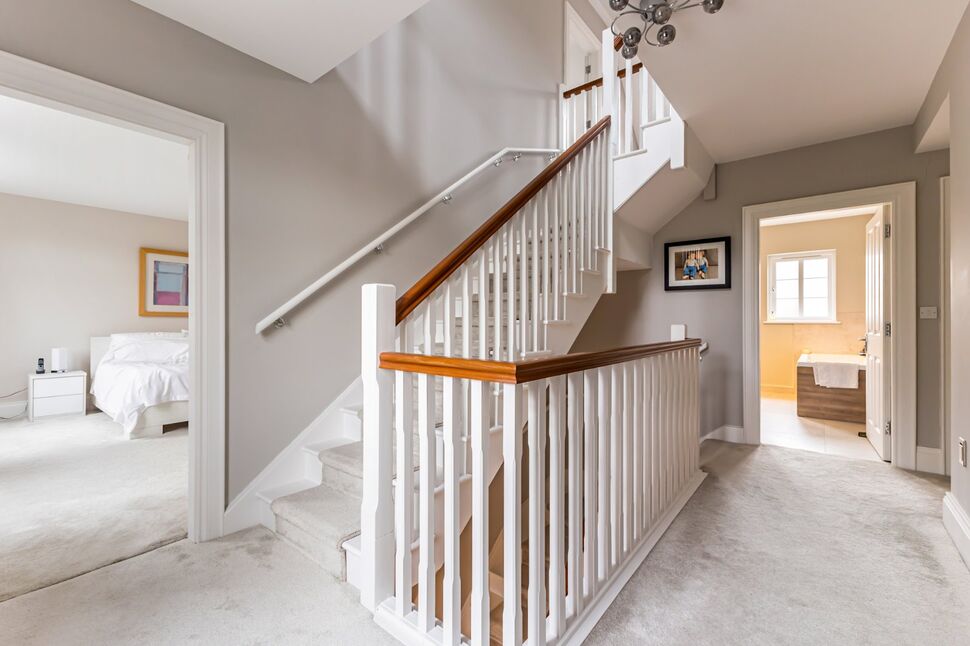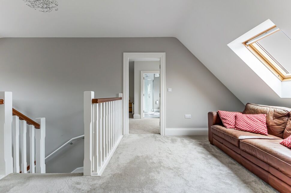 Accessed via Solid wooden staircase with wooden balustrade and spindles with track carpet up the inset leading to: