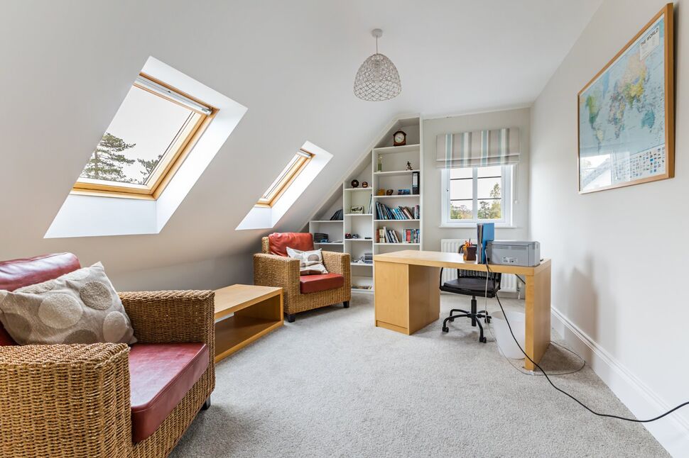Ceramic tiled floor, dual aspect picture windows overlooking private walled garden.