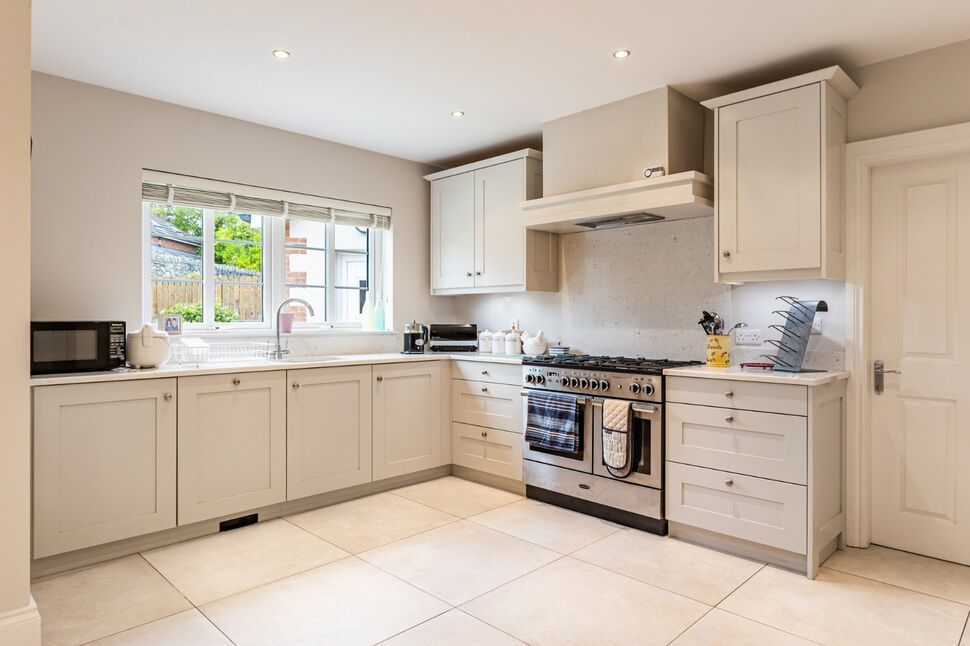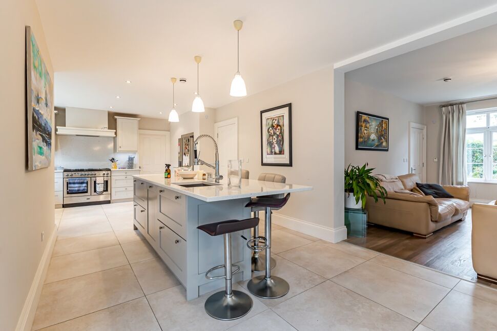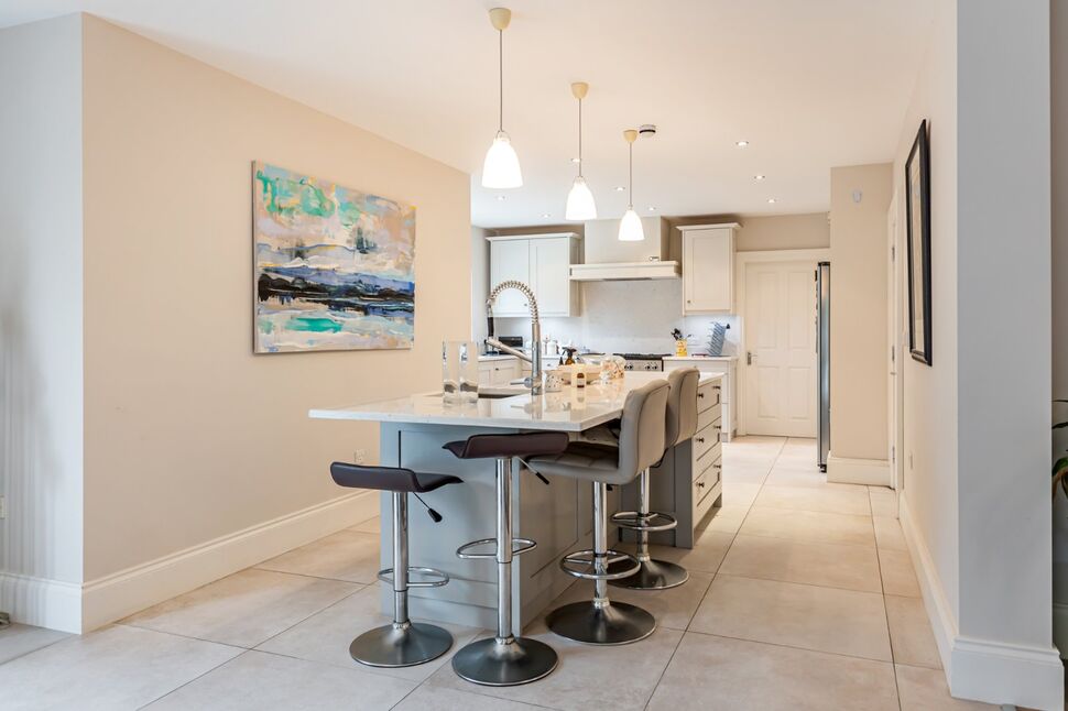 Extensive range of high and low level unit, Blanco 1.5 bowl stainless steel sink unit with mixer tap, granite worktops and drainer, integrated Siemans dishwasher, Rangemaser five ring built-in double oven with Blanco extractor fan. Kitchen island unit with Blanco built-in sink unit with feature mixer tap, granite worktop and drainer, range of low level units, breakfast bar, Samsung American style fridge freezer, ceramic tiled floor, uPVC double glazed doors to rear garden.