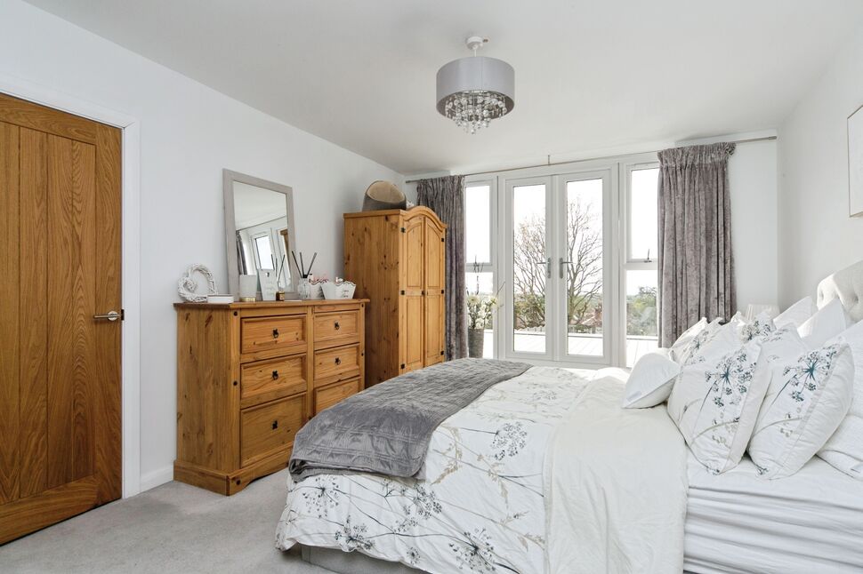 Nice size bedroom with radiator, power points and uPVC double glazed windows to the side and uPVC double glazed French doors leading out the balcony with composite decking. A door then leads into the: