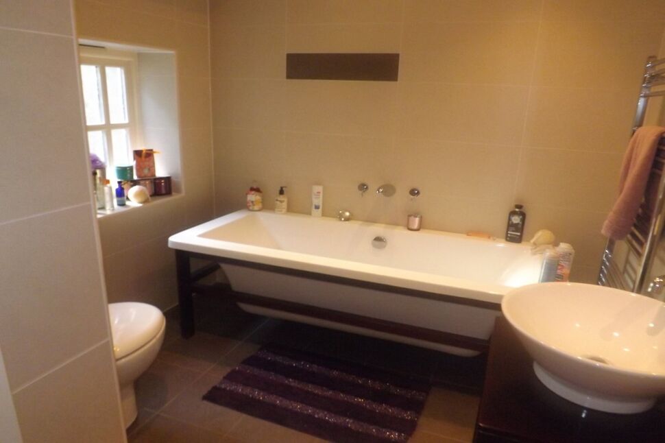 Four piece suite comprising of separate shower enclosure housing shower, stylish bath, wash hand basins, low flush wc. Fully complimentary tiled walls and floor, extractor fan, spot lights to the ceiling,