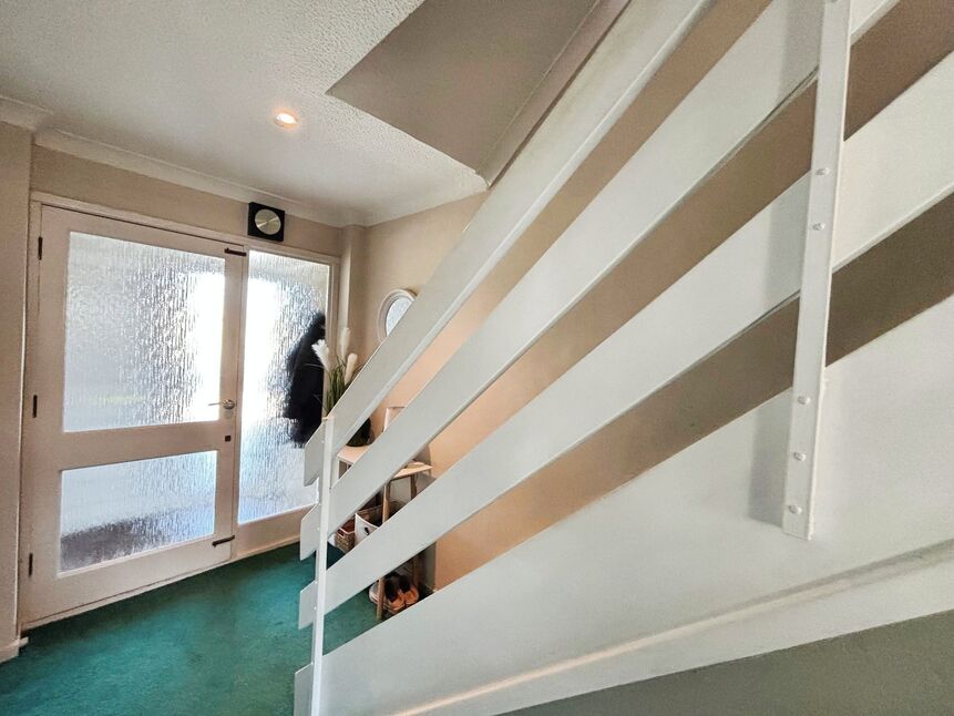 Stairs leading to the first floor. Built in under stairs storage cupboard. Ceiling light point.