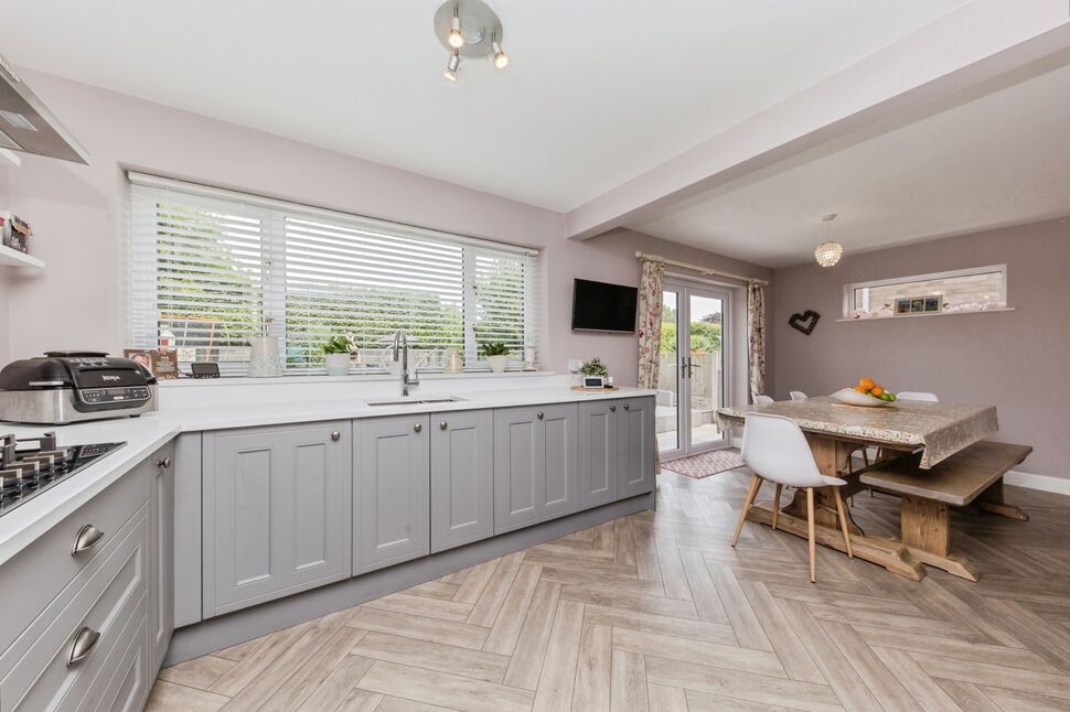 Located within the kitchen/diner, this area accommodates a dining table and seating. French doors provide direct access to the rear garden patio.