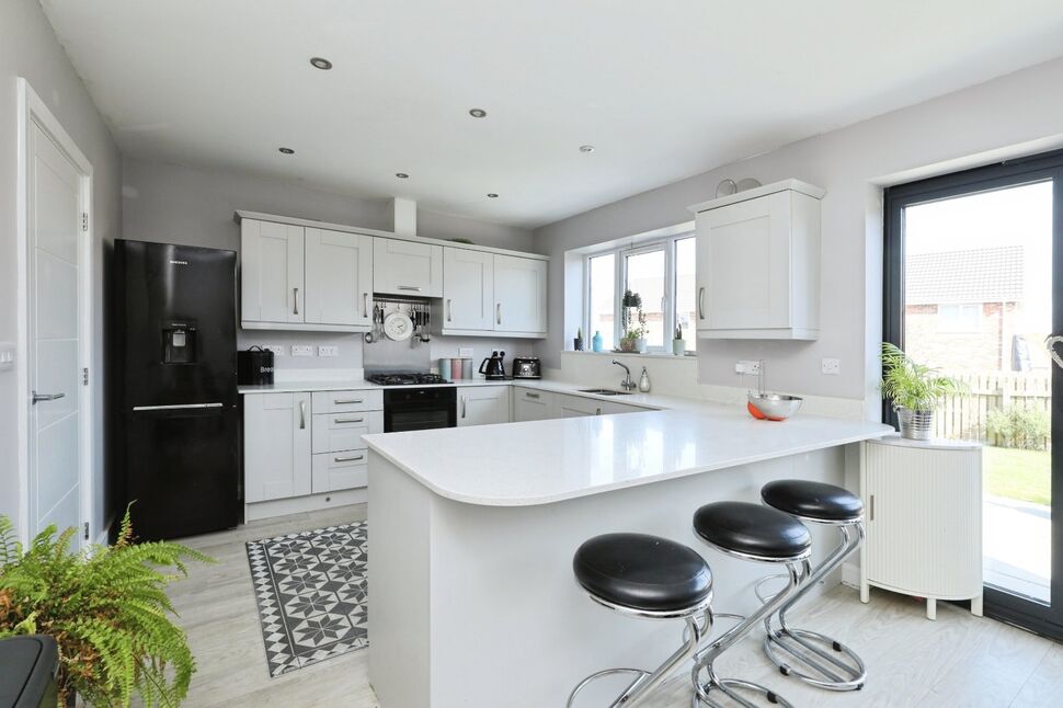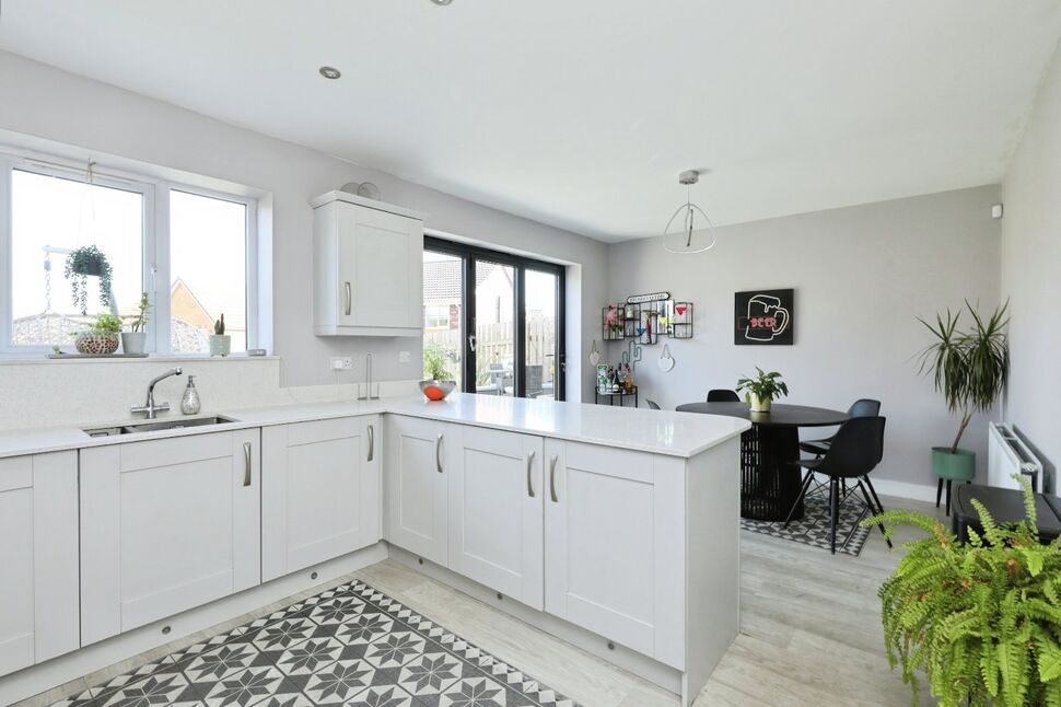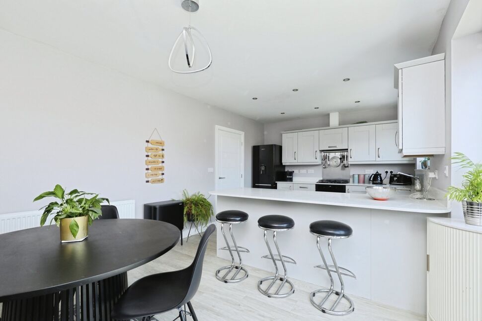 The house boasts a reception room with a striking bay fronted window that pours natural light into the space, creating a warm and welcoming atmosphere. Additionally, the property features an open-plan kitchen dining room, beautifully illuminated by natural light and equipped with a Quartz worktop extending to the breakfast bar. The kitchen also exhibits a unique design aesthetic with bi-folding doors, seamlessly blending indoor and outdoor living.