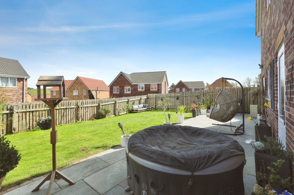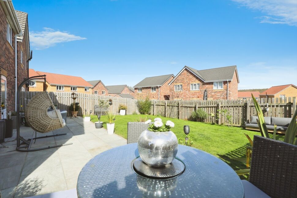 To the front of the property is a well maintained lawned garden and driveway providing off street parking leading up to the garage. Feature uplight and built in canopy over the door area. There is pathway and gate leading to the back garden whichprovides side access.To the rear of the property is a generous sized garden which is mainly lawn, complemented by a qualityIndian Stone patio which runs across the entire length and one side of the property. This provides the ideal spot for entertaining and has has plentiful space for outdoor furniture. The garden area benefits from asecurity light, double electric sockets, and an outdoor tap. It is fully enclosed with fencing and provides a secure space for families and entertaining.