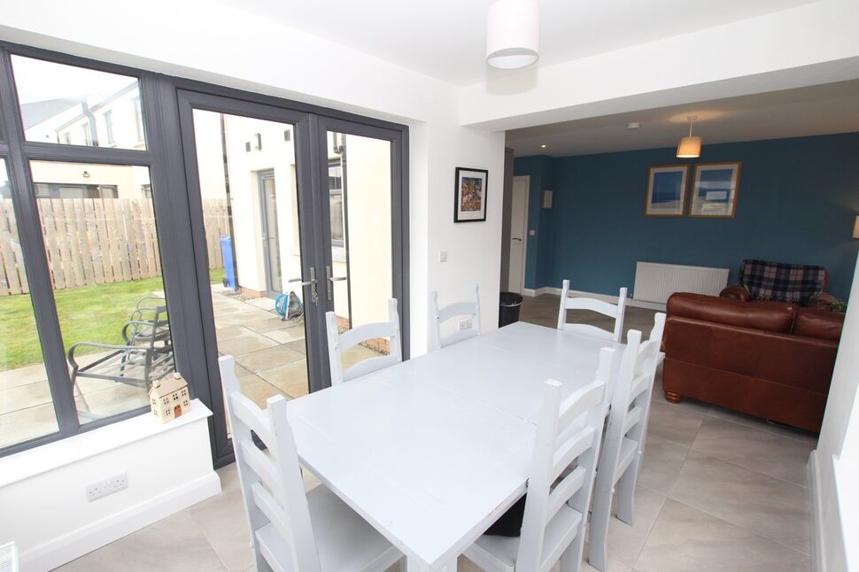Open plan access just off family area. Views to rear garden. Tiled flooring and spotlights. Double doors to rear patio.