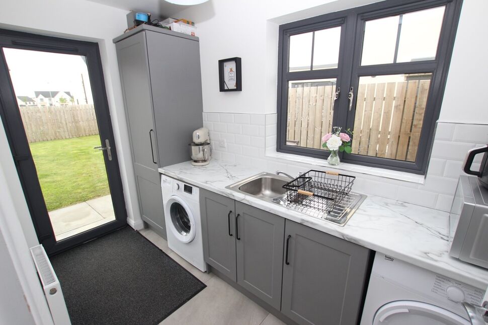 Range of low level units with matching work surfaces. Single drainer stainless steel sink unit and mixer taps. Plumbed for washing machine. Space for dryer. Concealed wall mounted gas boiler. Fully tiled floor. PVC double glazed door to rear. Extractor fan.