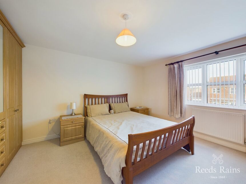 A spacious retreat, the principal bedroom enjoys a front-facing double-glazed window, allowing plenty of natural light. A full wall of fitted wardrobes offers storage with a combination of hanging rails and shelving. Warm and welcoming, this room is complete with a radiator and benefits from its own private en-suite.