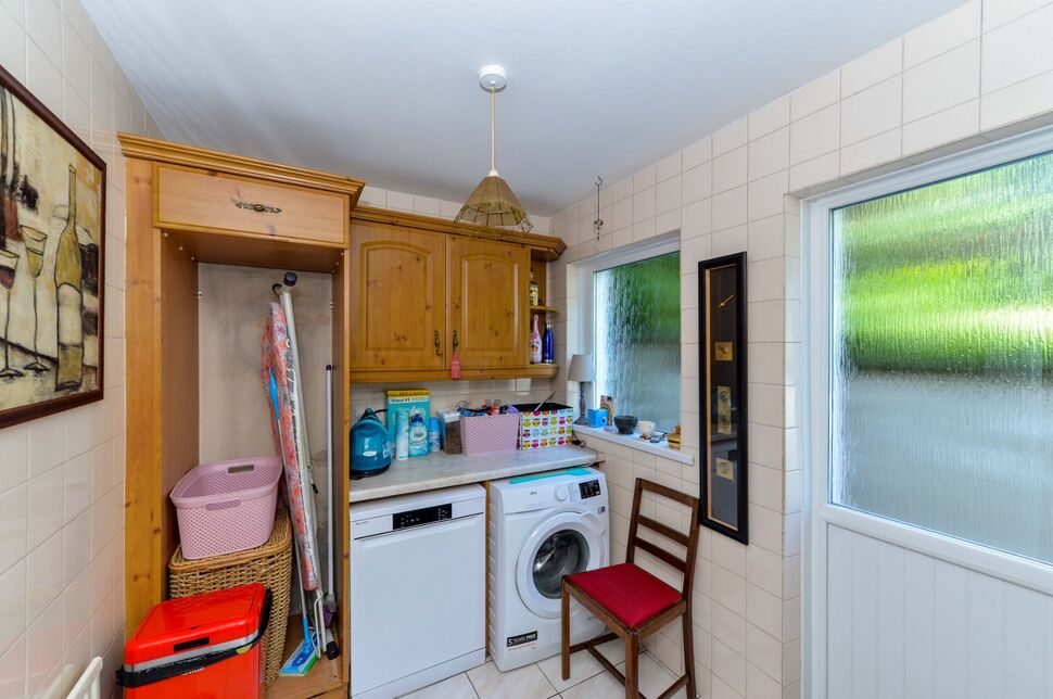 Range of high and low level units. Laminated work surfaces. Plumbed for washing machine. Vented for tumble dryer. Fully tiled walls. Ceramic tiled flooring.