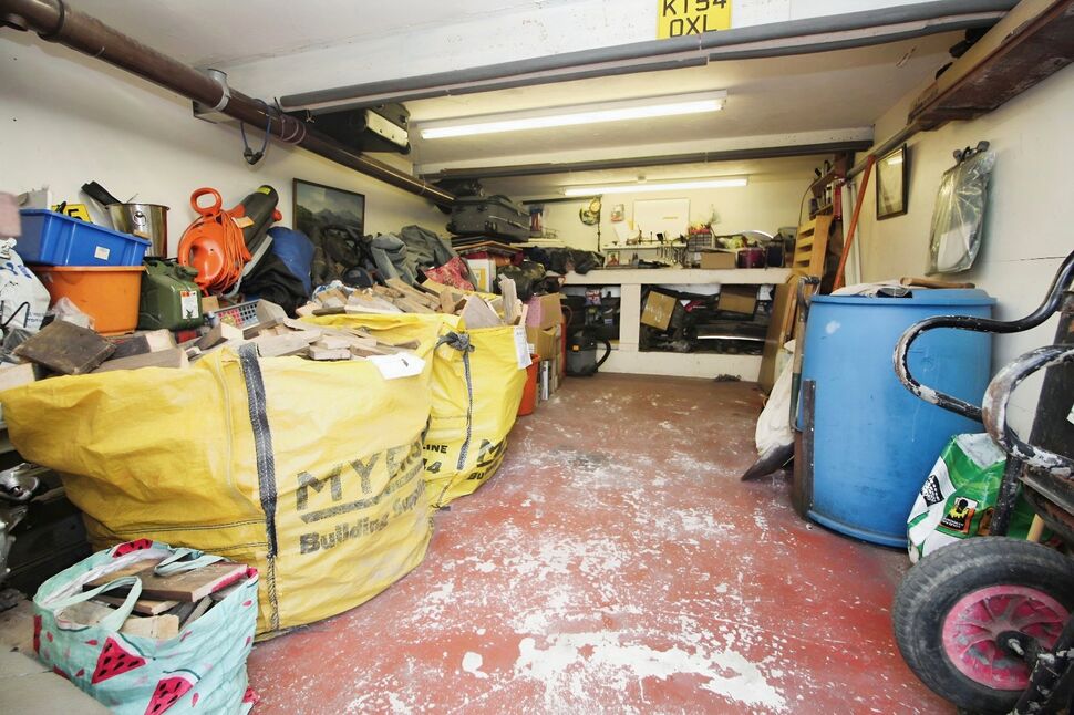 A pathway provides access to the front and side entrance Porch of the property. An enclosed paved patio and seating area extends to the rear. A large driveway and parking area extends to the side of the property, providing ample off-road parking and access to a large ATTACHED GAGARE with WORK-SHOP/STORE. An additional UNDER-PROPERTY STORE/WORK-SHOP also offers excellent secure space for a number of uses and includes a timber door, power and lighting.