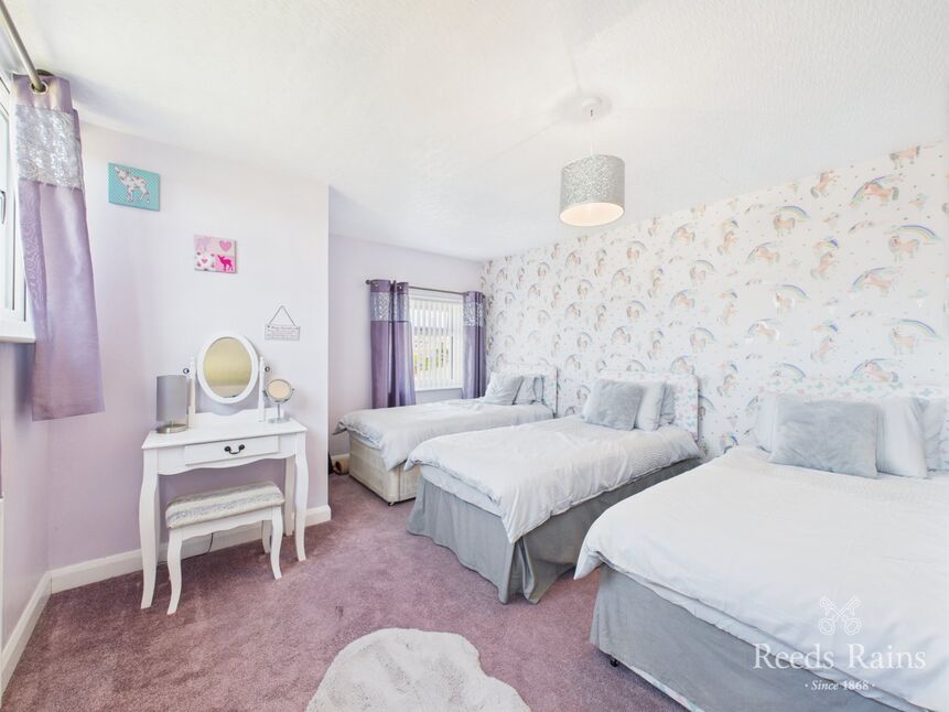 This generously sized bedroom benefits from an abundance of natural light, thanks to its multiple surrounding windows that create a bright and airy ambiance. The well-proportioned room offers flexible living space, perfect for use as a guest room, children’s bedroom, or a blank canvas ready to be personalised to suit any lifestyle.