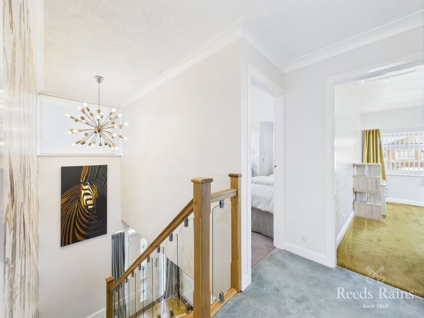 Ascending to the first floor, the landing provides a central and airy space granting access to the bedrooms and bathroom, seamlessly connecting the private quarters of the home.