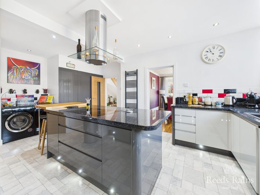 Refurbished, the kitchen is a true haven for any culinary enthusiast—combining style, function, and contemporary charm. Boasting ample work surfaces and generous storage solutions, it includes some integrated appliances with additional space for freestanding options. A central island enhances both the practicality and aesthetic appeal of the space, offering an ideal spot for food preparation or casual dining. Enjoying a pleasant front-facing aspect, the kitchen also benefits from convenient access to the entrance hall, cloakroom/WC, and internal door to the garage—ensuring seamless day-to-day living.