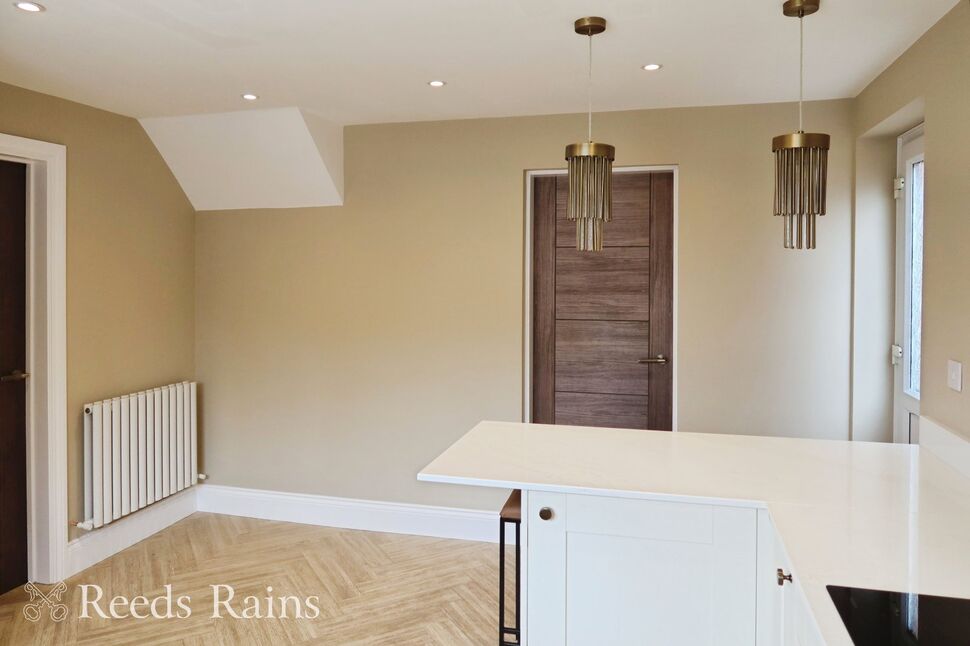 Light and spacious reception room with front facing double glazed bay window and rear facing double glazed French doors leading to the conservatory. Two radiators. TV point. Coved ceiling. LVT flooring. Door leading to the kitchen.