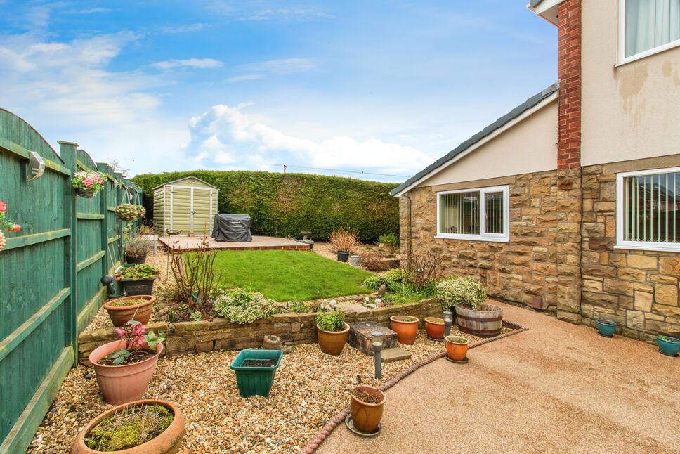 To the front of the residence is a wide resin driveway providing ample off street parking for a number of vehicles. To the side is an elevated garden with lawned section, planted beds and a decked seating area positioned to capture the afternoon and evening sunshine. To the rear is a landscaped garden with lawned section, resin pathway and low maintenance planted borders.
