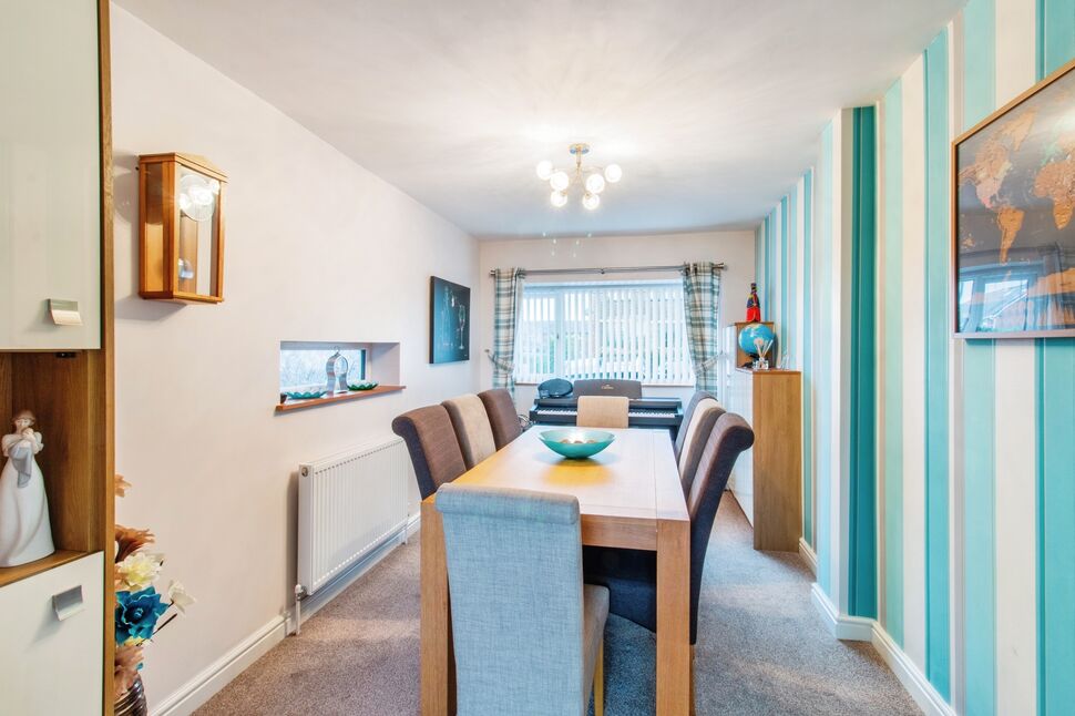 A spacious dining room created by converting the original garage. Having a central heating radiator and windows to the front and side elevations.
