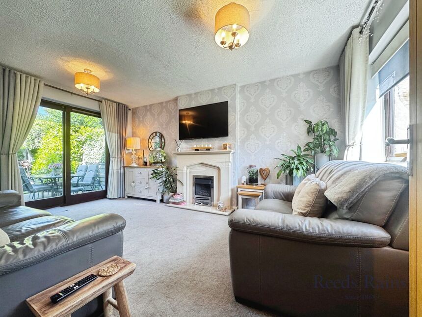 Double glazed window to the front aspect, double glazed patio doors, fire place with feature surround, radiator, ceiling light.