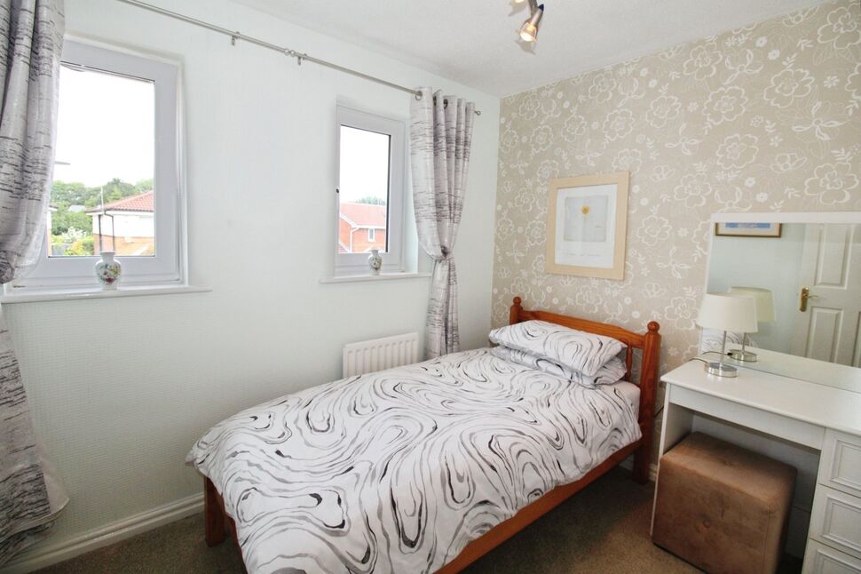 Double glazed window to rear, radiator, double mirror fronted built in wardrobe.