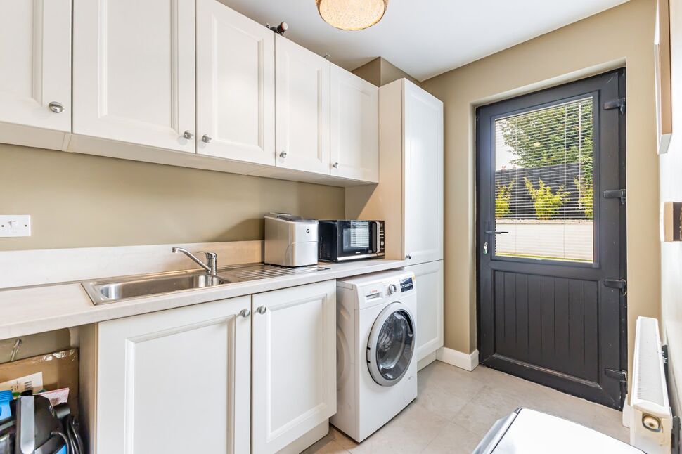 The utility provides a range of units, basin with mixer tap, and has been plumbed for a washing machine and drier. There is a PVC door leading out to the rear garden.