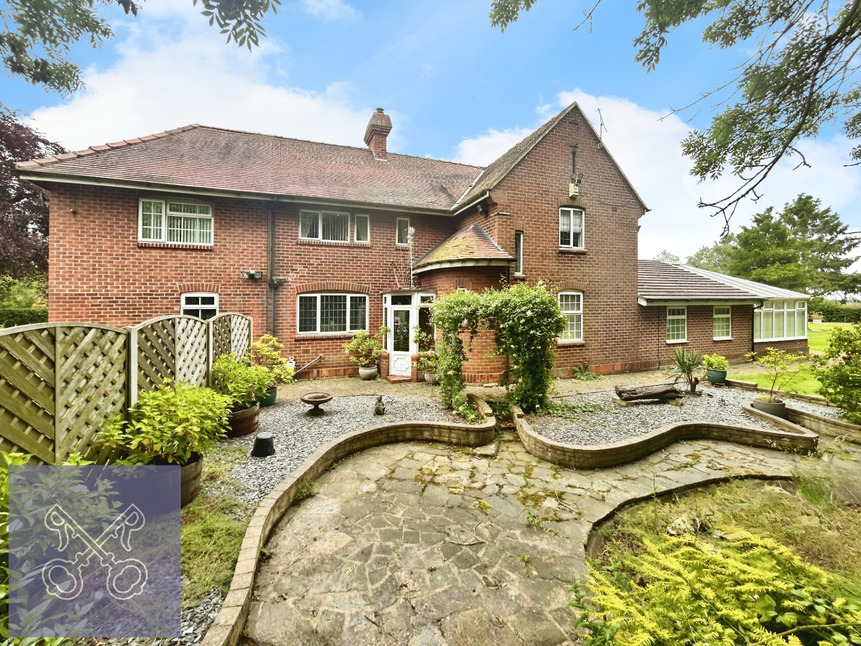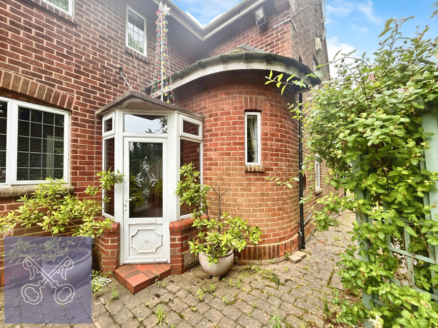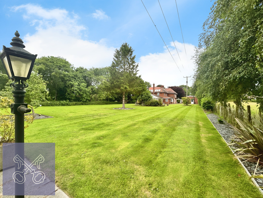 The driveway makes a fantastic first impression, approached via twin brick pillars that open onto an extensive block paved driveway providing a sizeable designated parking area. This expansive driveway offers ample car parking spaces and pedestrian access to the gardens. The surrounding beds and borders are filled with a variety of shrubs, plants, and trees, creating a picturesque entrance. External lighting enhances the welcoming ambiance, ensuring the property remains inviting both day and night.