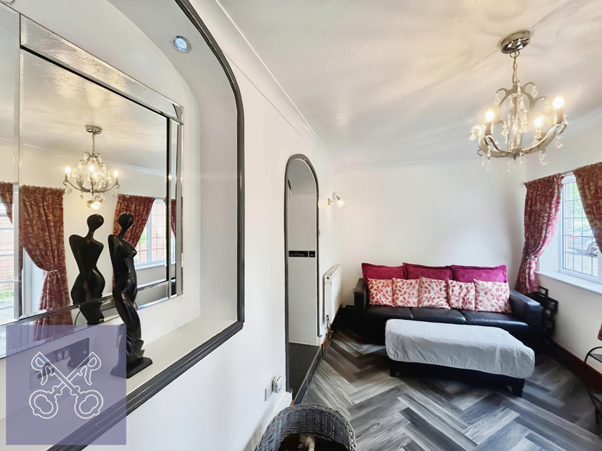 Currently used by the seller as an additional reception room, the study features a double-glazed window facing the side of the property. This versatile room boasts ceiling coving, a ceiling rose, laminate floor covering, and a radiator, making it suitable for various uses.