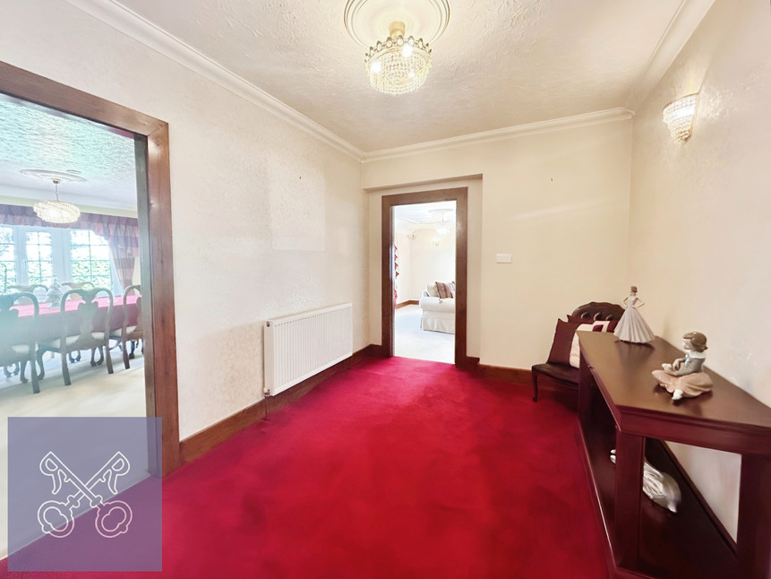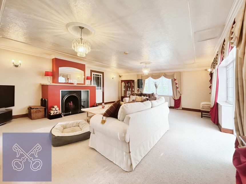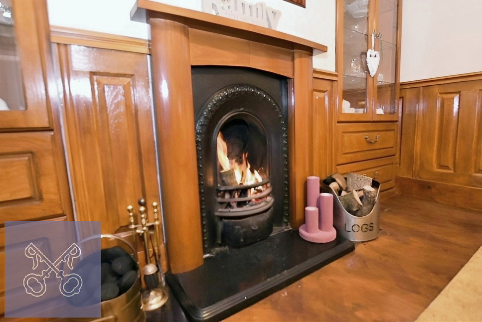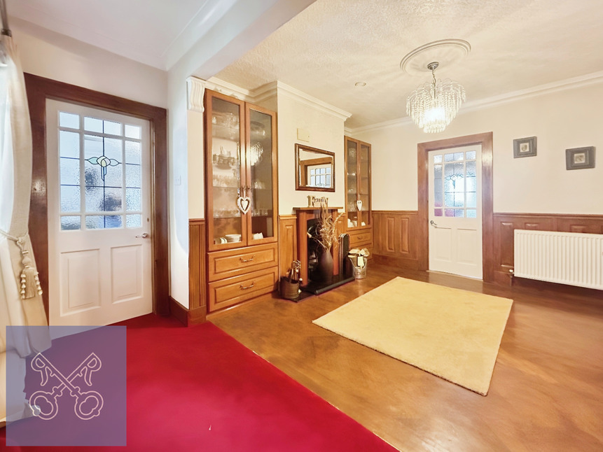 Accessed in an open-plan style from the reception hallway, the snug is a cosy and inviting space. It features fitted cabinetry in the alcoves and a charming fireplace, perfect for open fires during the cooler months. Ceiling coving, a ceiling rose, and a radiator add to the snug’s charm, making it an ideal spot for relaxation.